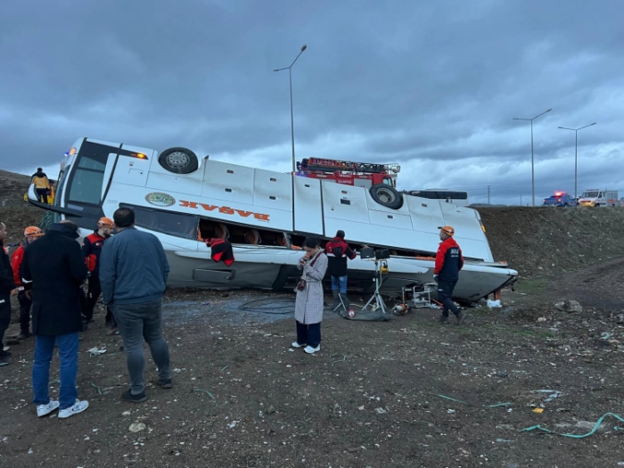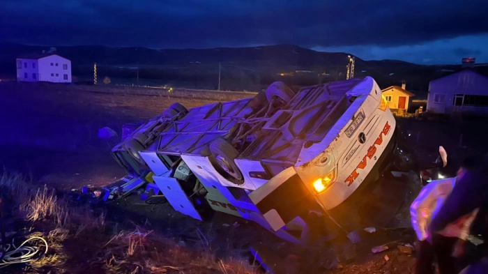 ALPARSLAN DİYARI- Yalova'dan Erzincan'a giden E.C. yönetimindeki Başak Turizm yolcu otobüsü Sivas-Erzincan kara yolu İmranlı ilçesi merkez girişinde devrildi.