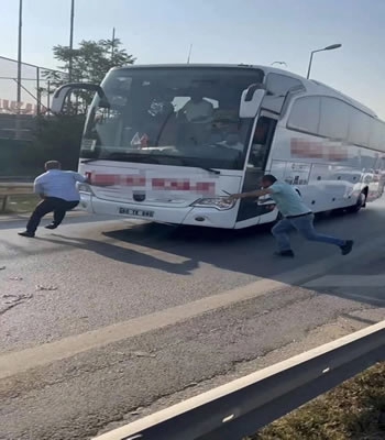 Muavin saldırgandan kaçarak kurtulurken, eli bıçaklı şahıs otobüsün önünü keserek gitmesine engel oldu.Saldırganın otobüsünün önünü kesmesi ve bıçak çekmesi ise bir vatandaş tarafından cep telefonu kamerasıyla kaydedildi.