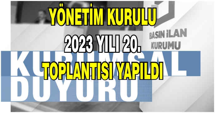 ALPARSLAN DİYARI-Basın İlan Kurumu Yönetim Kurulu toplantısında resmi ilan ve reklam yayımıyla alakalı süreli yayınlar hakkında yapılan işlemler, basın çalışanlarının borç para talepleri ile gazetelerin isim değişikliği talepleri görüşülerek karara bağlandı.