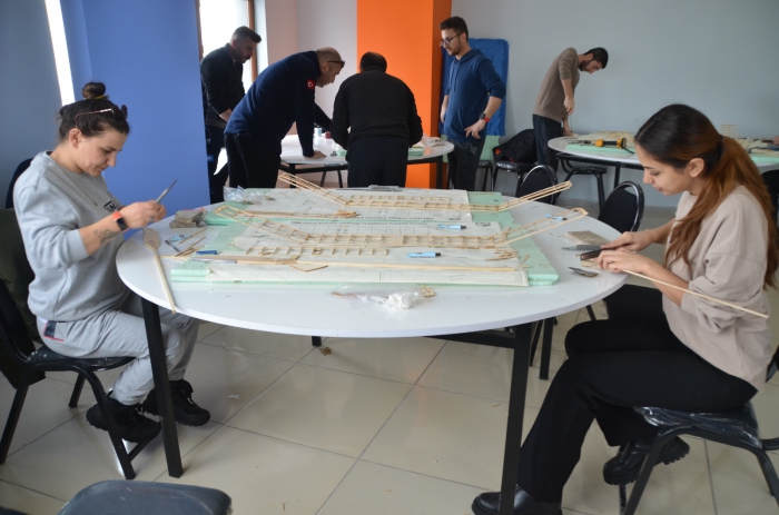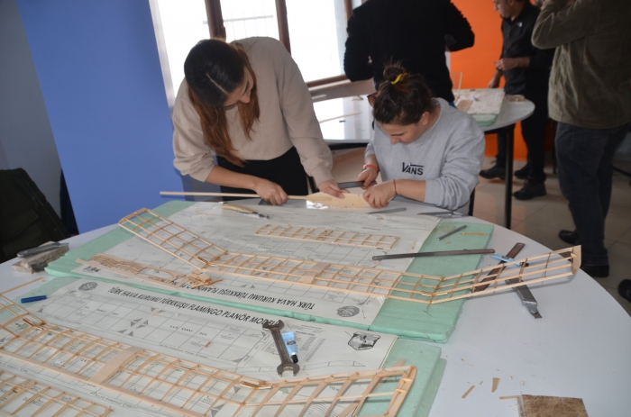 İlçedeki Kitap Kafe'de oluşturulan atölyede eğitime katılan 10 öğretmen, ahşap malzemelerden flamingo model uçak yapımını öğrendi. Türk Hava Kurumu (THK) eğitmenlerinden model uçak yapımının inceliklerini öğrenen ve uluslararası geçerliliği olan sertifika verilen öğretmenler, havacılığa merak salan öğrencilerine öğrendikleri bilgileri aktaracak.