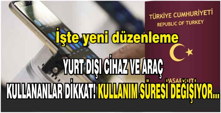 ALPARSLAN DİYARI- Yurt dışı hatlı mobil cihazların, Türkiye'de kaydedilmeden kullanılma süresi uzatıldı. İşte detaylar...