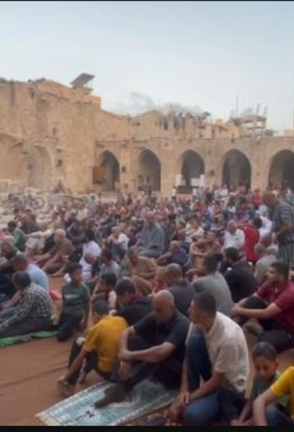 ALPARSLAN DİYARI-Gazze Şeridi'nde 9 aydır devam eden savaşa ve acılara rağmen tekbir sesleri arasında bayram namazını kılan Filistinliler, namaz sonrasında birbirleriyle bayramlaştı.