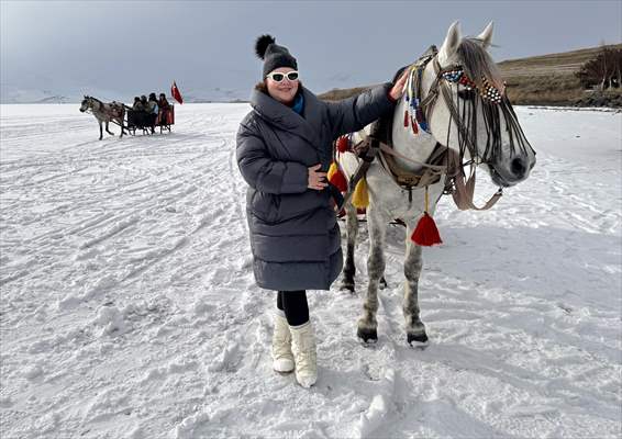 Arkadaşlarıyla İzmir'den gelen Candan Kaygusuz da Çıldır Gölü'nün atlı kızak ve buz üstünde gezinti keyfinin tarifi mümkün olmadığını söyledi.