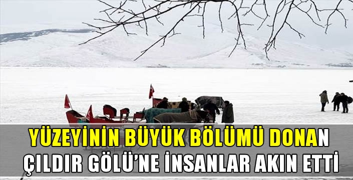 ALPARSLAN DİYARI- Gölün, Ardahan tarafındaki kıyı kesimlerine gelenler, atlı kızaklara binerek hafta sonunu değerlendiriyor. Buz üzerinde gezinti yapan turistler, gölün manzarasını görüntülemeye çalışıyor.