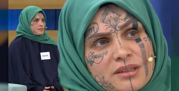 Televizyon programına katılan ve yüzündeki dövmelerle dikkat çeken Nazan adlı kadın, kendisini dolandırdığını öne sürdüğü kişi hakkında çarpıcı açıklamalarda bulundu. Yurtdışı sitelerinin de ilgisini çeken dövmeleri hakkında konuşan Nazan, bu dövmeleri 'çılgınlık anlarında' yaptırdığını ancak artık tövbekar bir hayat sürdüğünü belirtti.