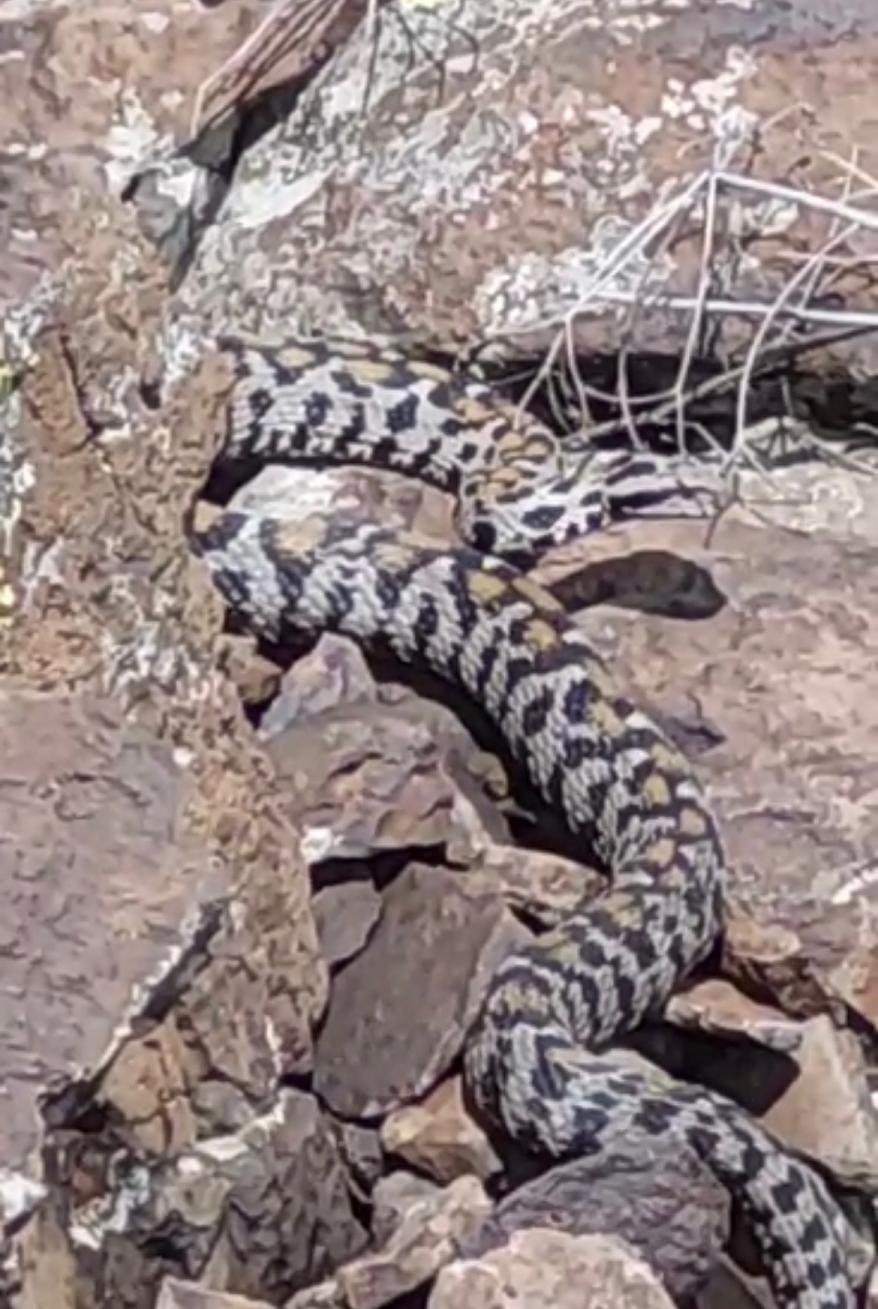 Doğa tutkunu İbrahim Altun ve arkadaşları, dağlık bölgede gezerken taşlar arasında bir yılan fark etti.