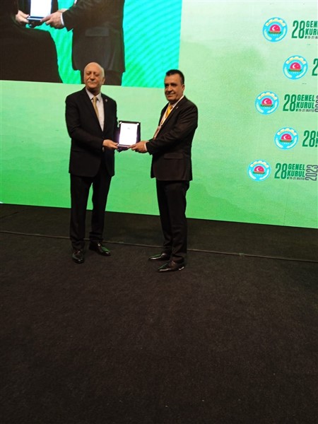 Türkiye Ziraat Odaları Birliği 28. Olağan Genel Kurulu için Ankara’ya giden Muş Ziraat Odaları Koordinasyon Kurulu Başkanı ve Malazgirt Ziraat Odası Başkanı Tahsin Kılıç, Malazgirt çiftçisine verdiği emek ve desteklerden dolayı Türkiye Ziraat Odaları Birliği Genel Başkanı Ş. Şemsi Bayraktar tarafından başarı plaketi ile ödüllendirildi.
