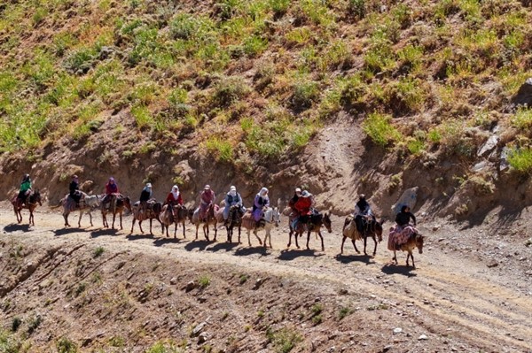 Berivanlar, katır sırtında patika yolları, sarp bölgeleri ve dik tepeleri aşarak kışın düşen ve halen erimeyen çığın oluşturduğu kar birikintilerinin üzerinden geçiyor. Yaklaşık 3 saat süren zahmetli yolculuğun ardından küçükbaş hayvan sürülerinin otlatıldığı 2 bin 800 rakımlı Küpe Yaylası'na ulaşıyorlar.